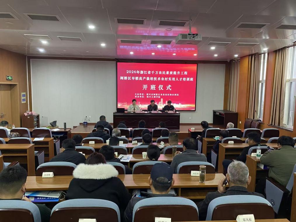 为全面提升柯桥区早稻高产栽培技术水平,提高种粮综合效益,全力保障早稻稳产增产、农户增收增效,3月17日—18日,2026年柯桥区早稻高产栽培技术农村实用人才培训班(精品班)在我校顺利举办。来自全区的34名种粮大户齐聚一堂,集中“充电蓄能”为2026年早稻生产夯实技术基础。