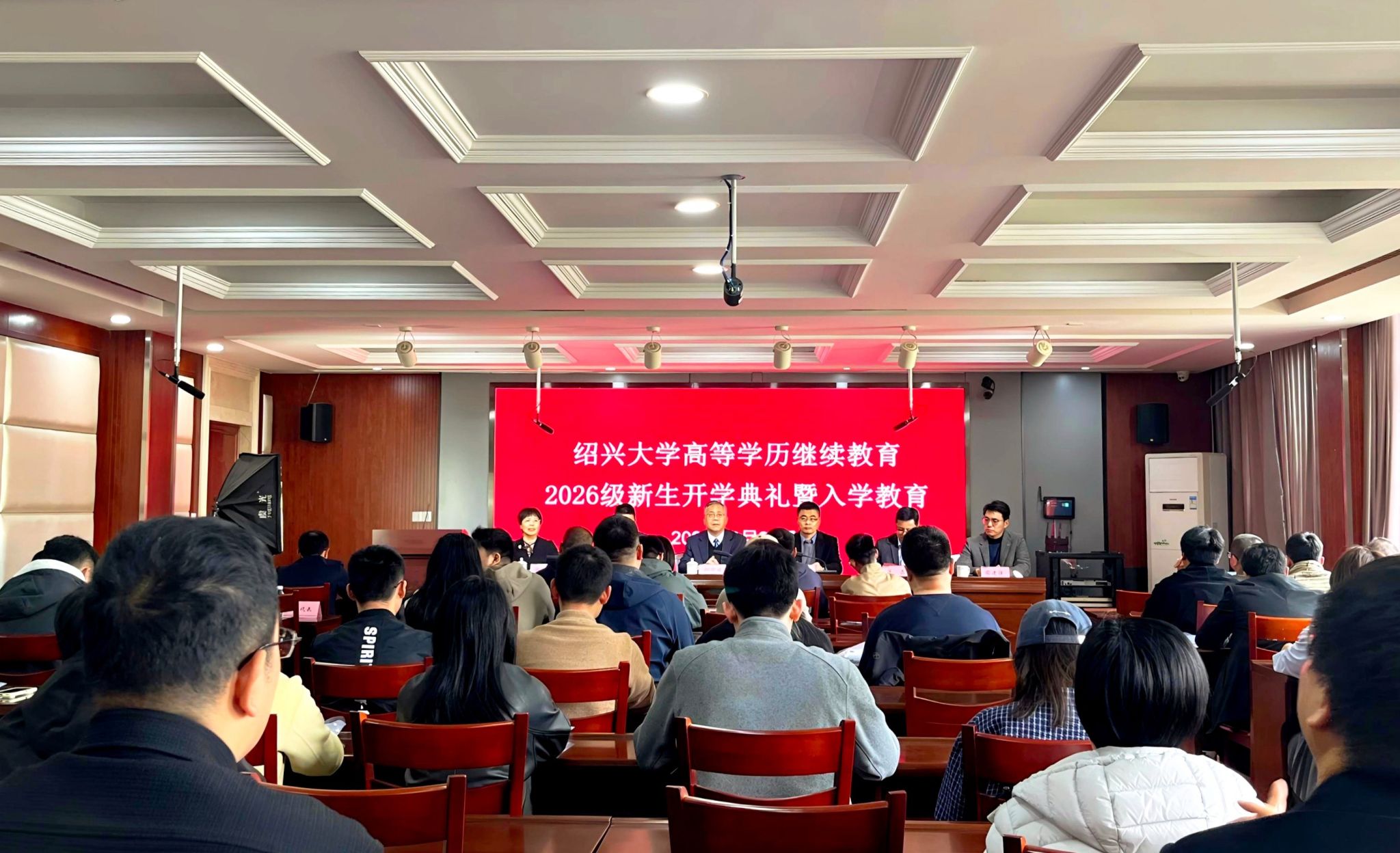 柳国庆代表学校向2026级高等学历继续教育新生表示欢迎和祝贺。他向大家介绍了古城绍兴的文化与特色以及学校的办学历程、基本情况、继续教育的办学特色。他指出学校将竭力构建智能学习的新型教育体系,全力满足大家多元化学习需求,创造最优学习条件,助力每一位学员成长成才。他对学员们提出了三点希望:一要坚定理想信念,把准人生航向。希望学员们深刻认识肩负的使命,珍惜学习机会,以学铸魂、以学增智、以学明理、以学促干;二要掌握科学方法,提升学习效能。希望学员们正确处理工学矛盾,深读经典,善用闲暇,善借平台,涵养学养;三要涵养卓越品格,实现全面发展。希望学员们将“修德求真、追求卓越”的校训融入日常,立足岗位,胸怀格局,在奋斗中成就自我。